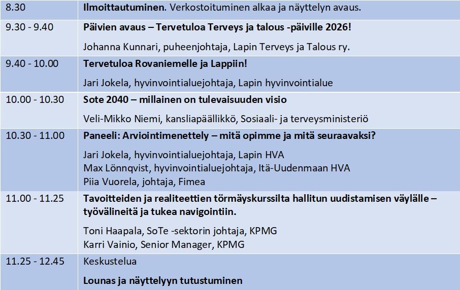 Ohjelma päivittyy vielä puuttuvilta osin helmikuussa 2026